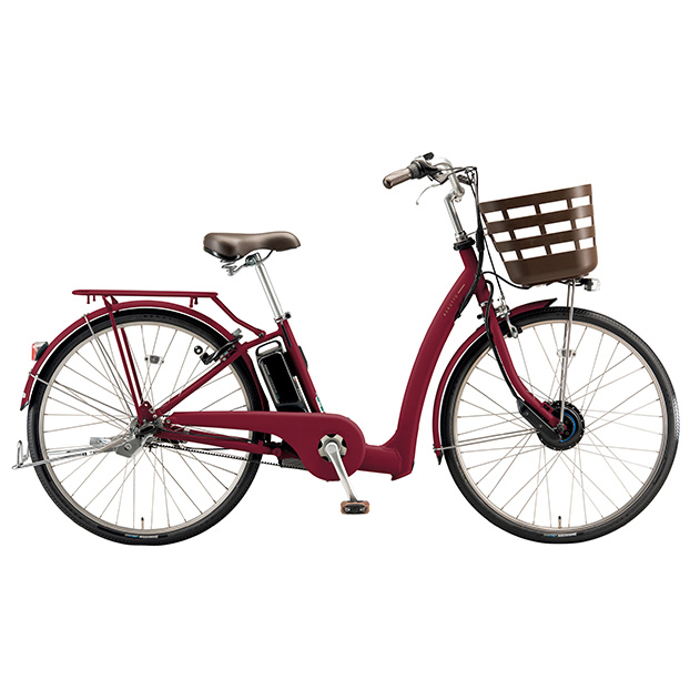 フロントモーターで回生充電機能付き・ラクッとまたぎやすい低いフレーム高・ラクッと乗り降りしやすい低いサドル高・短いクランク長で、漕ぎやすく小さく回して膝にやさしい設計