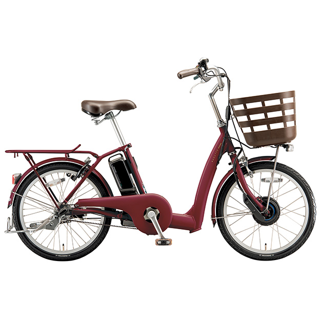 フロントモーターで回生充電機能付き・ラクッとまたぎやすい低いフレーム高・ラクッと乗り降りしやすい低いサドル高・短いクランク長で、漕ぎやすく小さく回して膝にやさしい設計