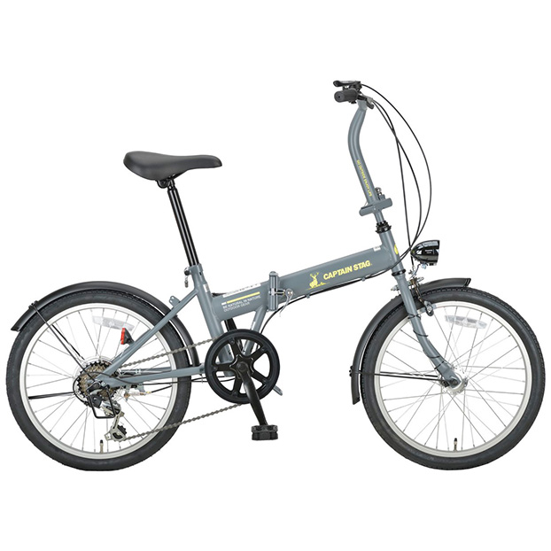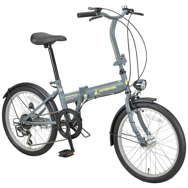 落ち着いたカラーの砲弾型LEDオートライト付き折りたたみ自転車。