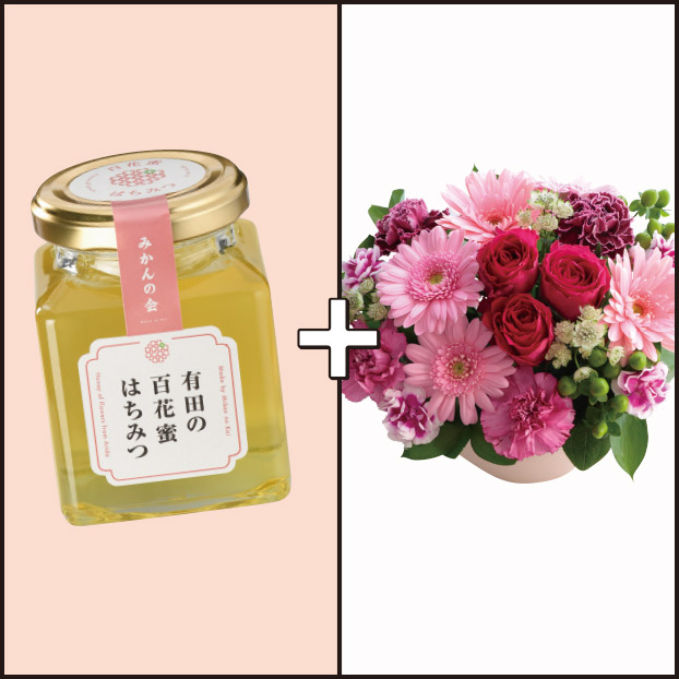 国産蜂蜜、百花蜜は山深い有田の野山であつめられます。蜜の貯蔵量が多いみかんの花が散ると、蜂は次の蜜を求めて野山を飛び回り木々や野花に集まります。蜂は数えきれない程の花々から蜜を集め巣箱に持ち帰りブレンドします。みかんはちみつに比べ色は少し茶色で様々な花香がブレンドされた深い香りとしっかりとした味わいが特徴です。