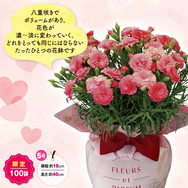 カーネーション『さくらもなか』5号鉢、不織布製鉢カバー