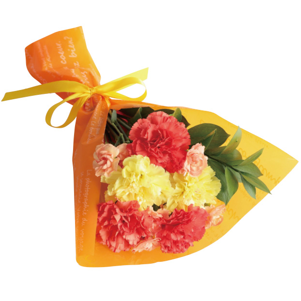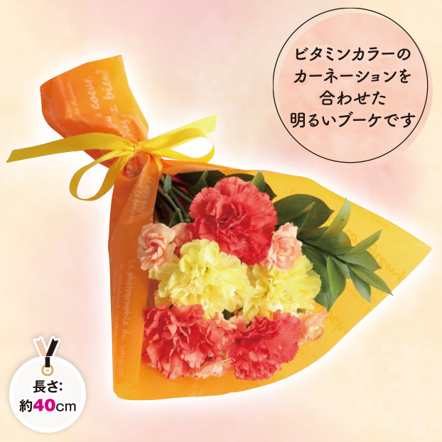 ビタミンカラーのカーネーションを合わせて明るいブーケにしました。元気なお母さんにぴったりです。