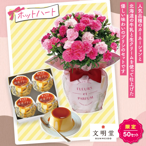 カーネーション『ホットハート』と文明堂『銀座プリン』セット(母宅)