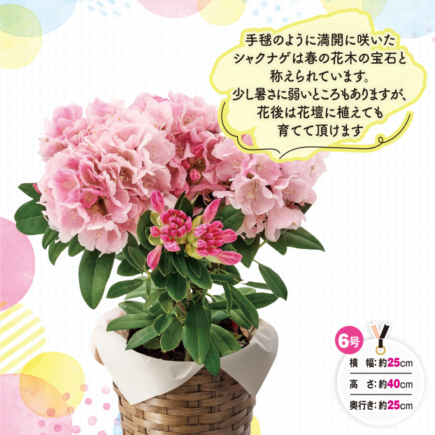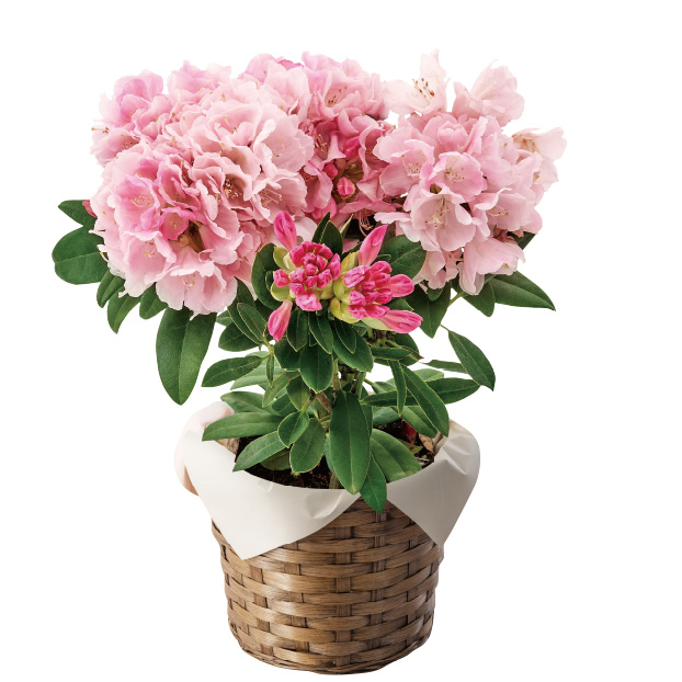 シャクナゲピンク(6号)、バスケット(竹製)、ラッピング