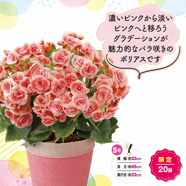 エラチオールベコニアボリアス5号鉢、バスケット