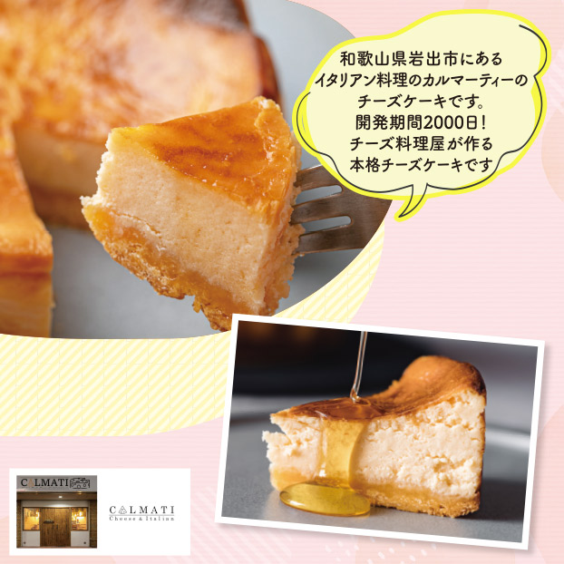 和歌山県岩出市にあるイタリアン料理のカルマーティーのチーズケーキです。開発期間2000日!チーズ料理屋が作る本格チーズケーキです。