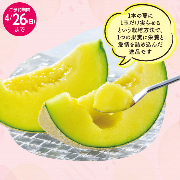 1本の蔓に1玉だけ実らせるという栽培方法で、1つの果実に栄養と愛情を詰め込んだ逸品です。