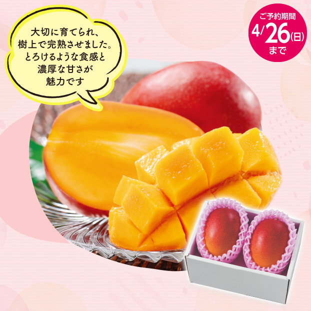 大切に育てられ、樹上で完熟させました。とろけるような食感と濃厚な甘さが魅力です。