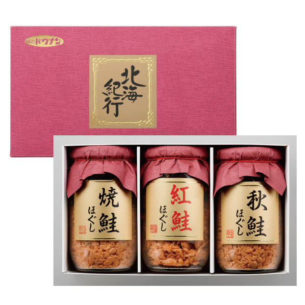 焼鮭ほぐし200g、紅鮭ほぐし200g、秋鮭ほぐし200g