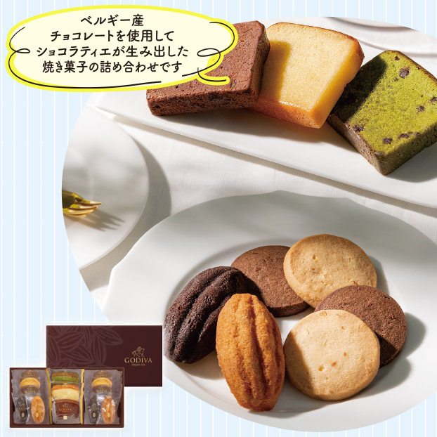 ベルギー産チョコレートを使用してショコラティエが生み出した焼き菓子の詰め合わせ。