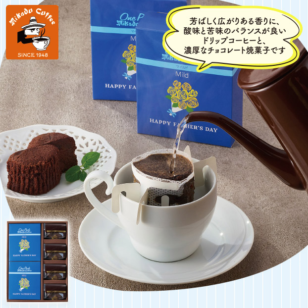 ミカド珈琲父の日パッケージワンパックコーヒー&トリュフショコラケーキ(父宅)