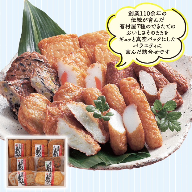創業110年の伝統が育んだ有村屋7種をできたてのおいしさそのままをギュッと真空パックにしたバラエティに富んだ詰合せです。