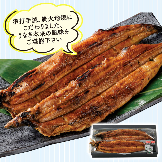 串打手焼、炭火地焼にこだわりました、うなぎ本来の風味をご堪能下さい